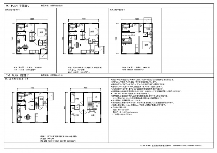 7×7 平屋PLAN 3PLAN